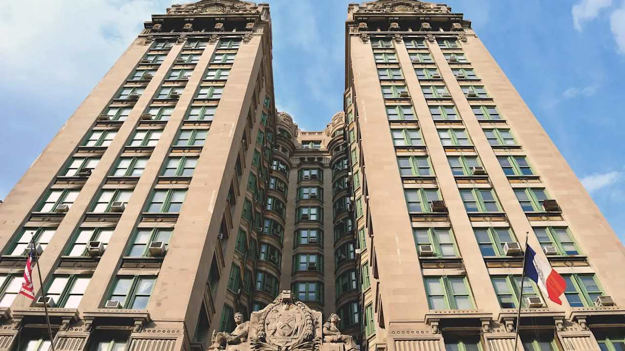 The 15-story, Beaux Arts-style building at 49 Chambers Street, the former home of the Emigrant Industrial Savings Bank, was designed by Raymond F. Almirall and built across from the Tweed Court House in City Hall Park 1912. Over a century later, in 2018, the building was converted to 99 condominium apartments in 2018.