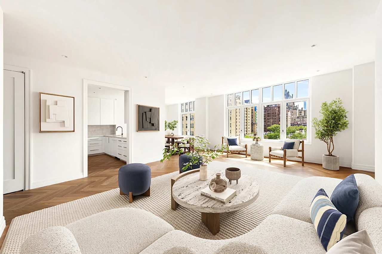 The penthouse features a private terrace overlooking Central Park, a private elevator landing, and a welcoming foyer.
