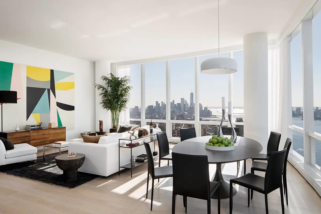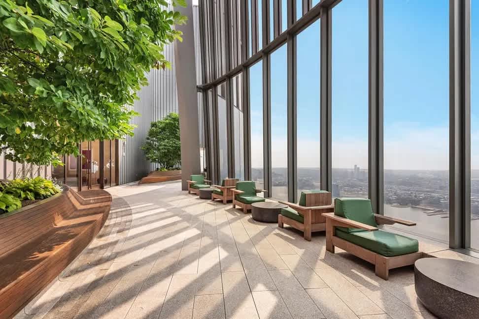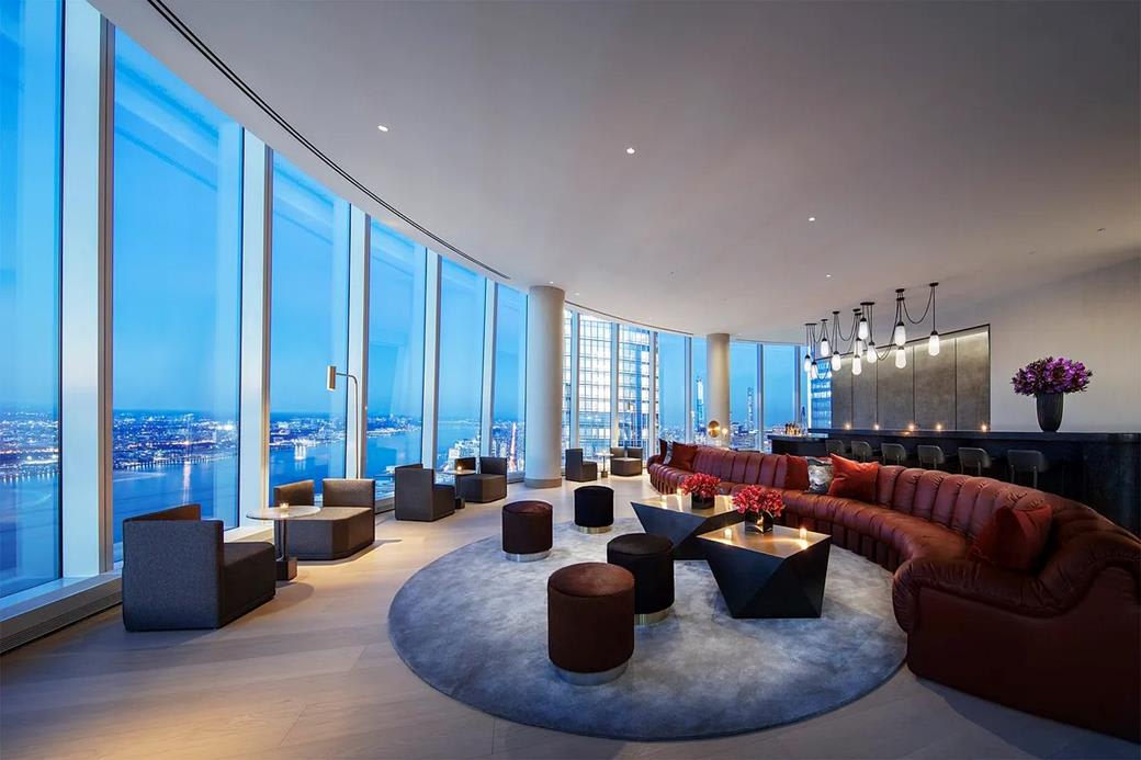 Residents of Fifteen Hudson Yards arrive to an elegant attended lobby, and the amenity suite is located on high floors to make the most of skyline and river views. The 50th floor is dedicated to health and wellness with a 3,500-square-foot fitness center, a 75-foot lap pool with whirlpool and lounge area, spa, and beauty bar. The 51st floor houses a business center with dual conference rooms, two private dining rooms, a Club Room with billiards and card tables, a screening room and performance stage, and multiple lounges. To top it all off, the Skyline Suite and Sunset Lounge are set over 900 feet in the sky to look out on panoramic vistas.