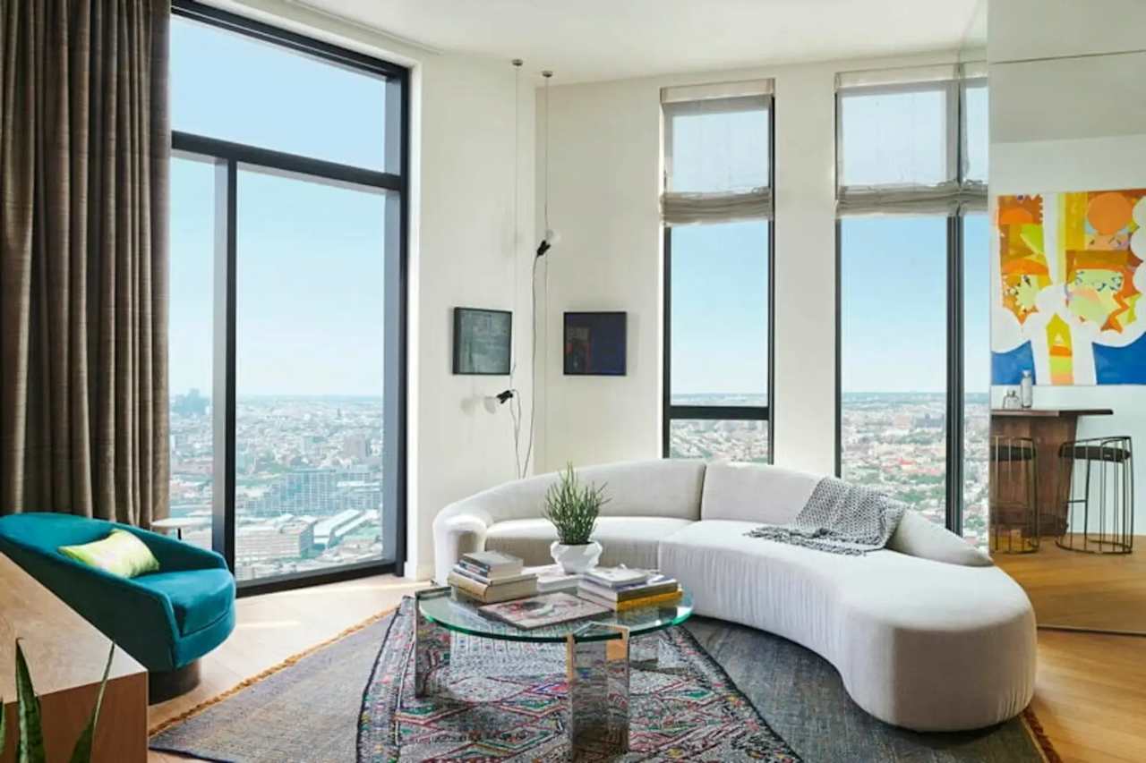 The amenity spaces at The Brooklyn Tower are nothing short of remarkable. Set over several floors and featuring one of the city’s most dramatic swimming pools, the tower offers over 120,000 square feet of immersive indoor and outdoor amenities. In a first-of-its-kind partnership, distinguished health and wellness brand Life Time will operate and manage the comprehensive suite of amenities, providing an unmatched level of service across the expansive offerings.