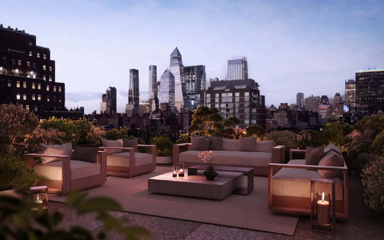 The condo boasts a massive 481 sq ft south-facing private terrace that offers panoramic views of the NYC skyline, including the Freedom Tower.