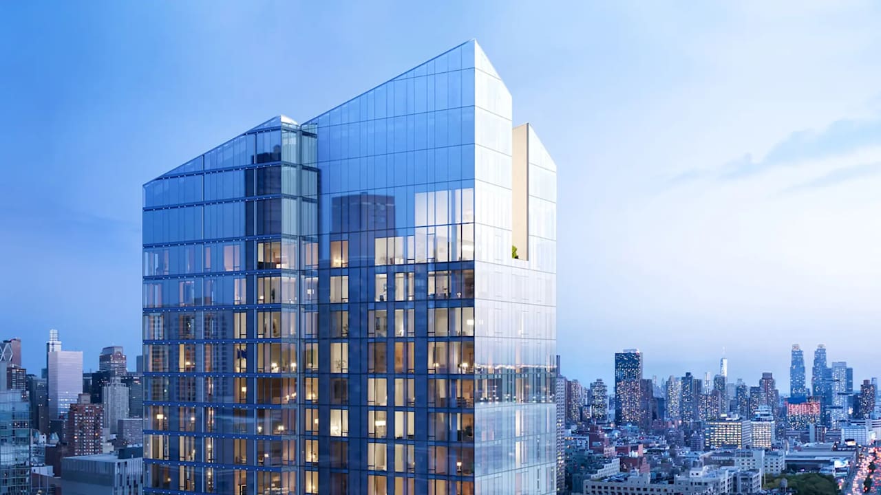 Two Waterline Square is one of three towers that face the brand-new Waterline Square Park between Midtown West and the Upper West Side. Shaped by Kohn Pedersen Fox, a global design firm known for their distinctive skyscrapers, the twin-peaked building sports a cascading façade whose angling crowns have become a marker on Manhattan's west side skyline.