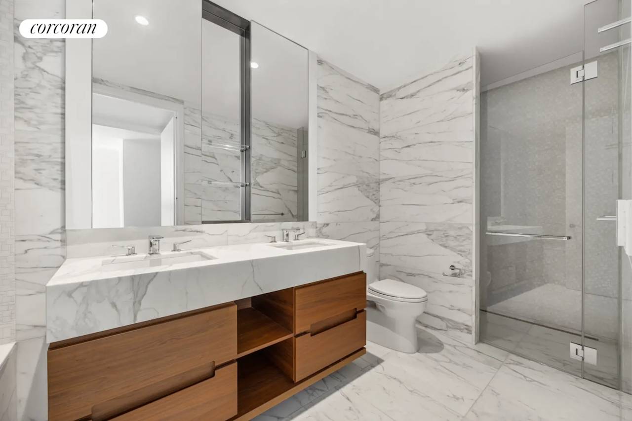 Each bathroom is cradled in a bespoke and indulgent array of stone and wood cabinetry.